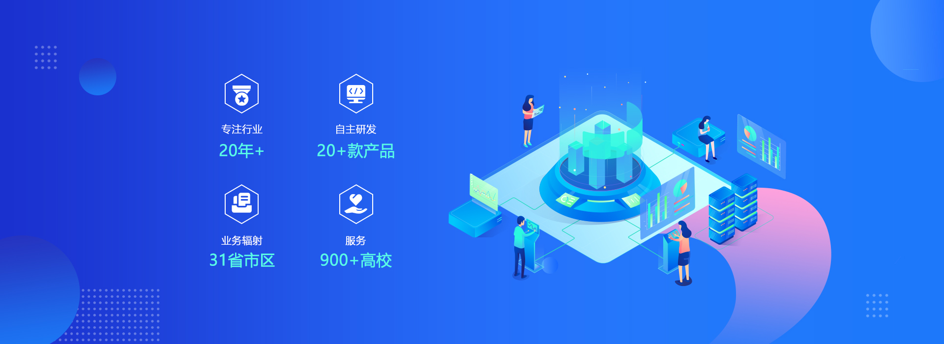 自主研發(fā)了教學(xué)微服務(wù)平臺、研究生綜合管理平臺、職業(yè)院校質(zhì)量管理信息平臺、本科教學(xué)質(zhì)量保障平臺、智慧校園信息平臺、一站式學(xué)生工作數(shù)字化平臺、智慧后勤綜合管理平臺等20多款產(chǎn)品